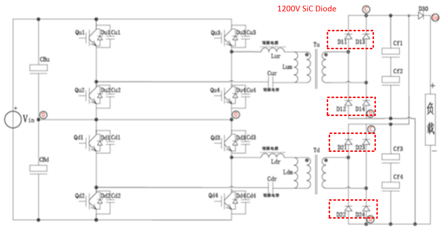 评估碳化硅二极管在两电平全SiC LLC变换器中应用;